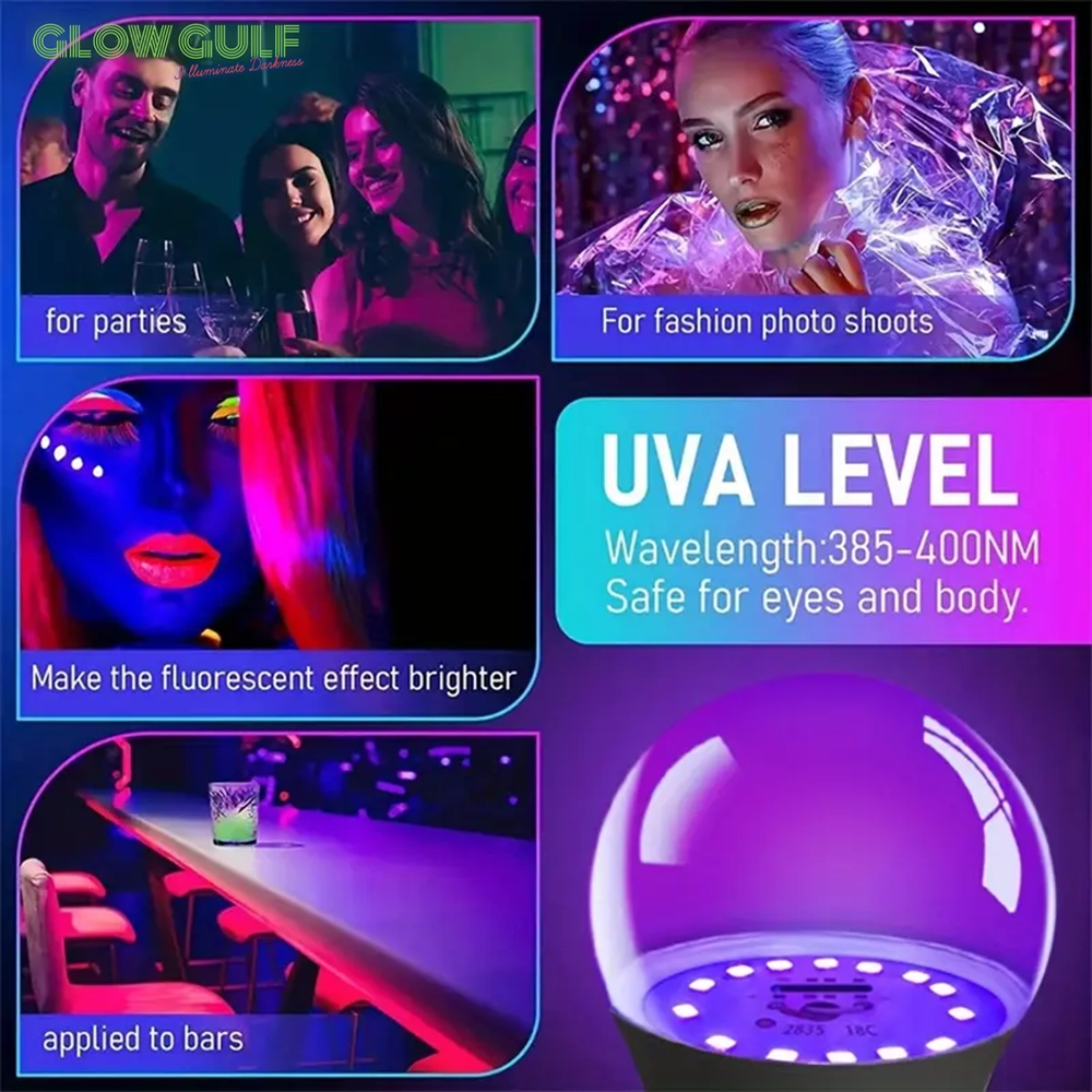 Unleash hidden colors and electrify your events with this powerful LED UV Black Light Bulb. Designed to make fluorescent and UV-reactive materials pop, this bulb is a game-changer for glow parties, neon art displays, and special effects. Simply screw it into any standard E26/E27 socket, and watch ordinary spaces come alive with mesmerizing blacklight magic.