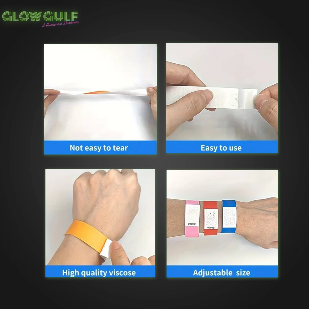 Enhance event security with 200 Tyvek wristbands, crafted for waterproof, tamper-proof, each band features secure adhesive and sequential numbering for tracking